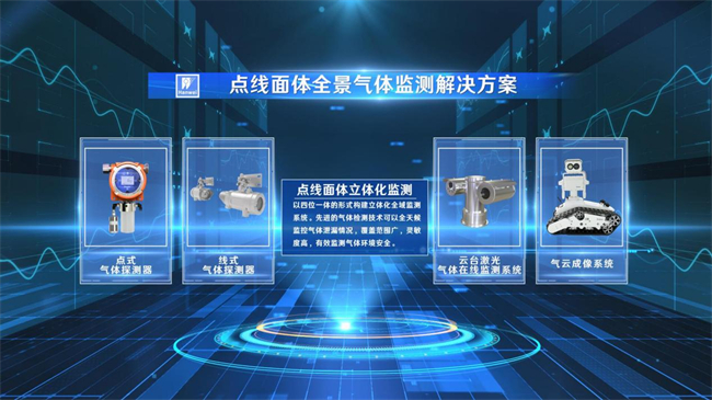 點線面體氣體檢測產品矩陣,以四位一體的形式構建立體全域監測能力。固定點式氣體探測器安裝在環境檢測的**現場,全天候監控危險氣體泄漏;線式氣體探測器適用于區域開闊的作業場所,通過光學技術原理,可以監控上百米范圍內ppm級別的氣體泄漏;面式氣體探測器即云臺掃描式激光氣體探測器,結合視頻、激光和物聯網技術,可以對整個管網、場站或罐區進行全面的危險檢測,實現24小時無人值守;此外,漢威光譜氣體成像技術能夠快速掃描紅外光譜,以監測、量化和顯示有毒有害氣體泄漏的情況。